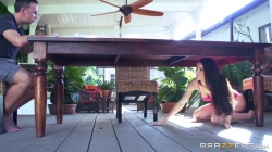 В ролях: Lana Rhoades ![]() Мужчина пришел в гости к своему другу. Оказалось, что его нет дома, а его жена разгуливает полу голой по дому. Парень несколько минут наблюдал на ее сочные формы, пока девушка не почувствовала его пристальный взгляд. Красавчик давно ей нравился и сегодня появилась возможность его соблазнить. Женщина предложила парню ужин и пока он обедал залезла под стол чужому мужчине и взялась сосать его член, пока муж на работе. Наглая измена не смутила ни одного из любовников и они отдались страсти по полной.