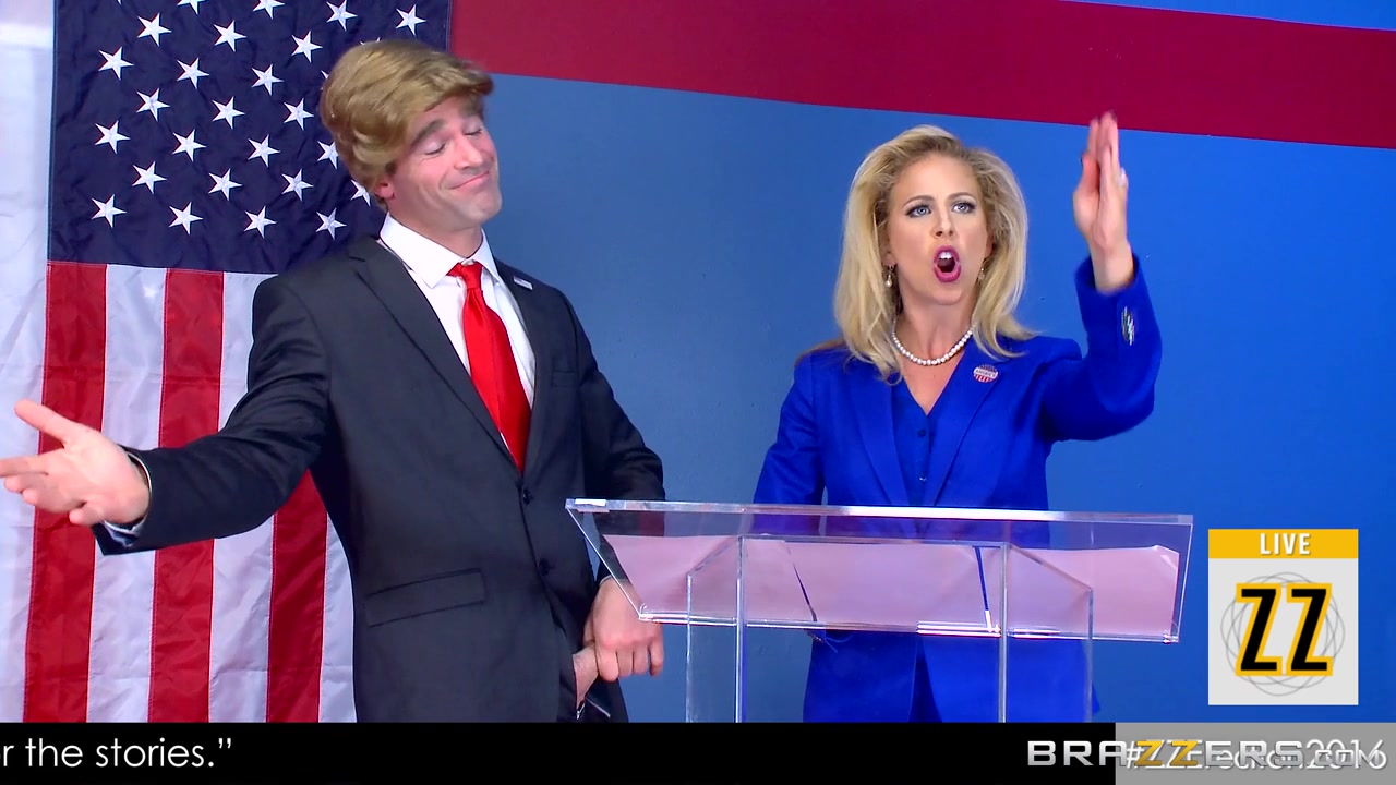 Хилари же серьезно подалась в политику, когда Моника начала делать более качественные минеты, нежели сама супруга. Ты или орешь на трибуне в сенате во весь голос или смачно чмакаешь член мужа. Хилари выбрала громкий голос, вооружилась конституцией и всевозможными поправками и должна была стать первой женщиной президентом. Но судьба показала, что тот у кого ест яйца и тот, кто никому не служит, разве что своей собственной алчности и гордыни, стал самым непредсказуемым кандидатом и победителем всем на зло....или нет)) Это так, мысли вслух, а здесь идет очередная блестящая постановка от Браззерс. Они то умеют удивлять получше Дональда Шрампа или Хилари Шминтон!!! Вот почему он президент?!!! Кто как не Трамп оттрампировал Хилари после дебатов. |