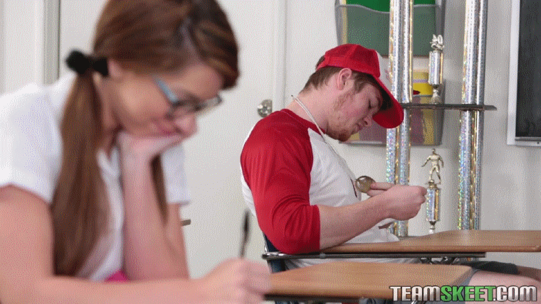 А когда парень притащил с собой свой очередной кубок, заучка не смогла устоять. Она кусала губы и нервно смотрела на капитана команды. Но таким образом красавчика в постель не затянешь, нужно действовать. Тогда заучка расстегнула свою блузку и оголила грудь перед парнем. Заучка легко соблазнила капитана футбольной команды и трахнула его прямо за партой. |